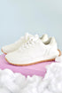 Tenis deportivos material microfibra color talco, con detalles dorados